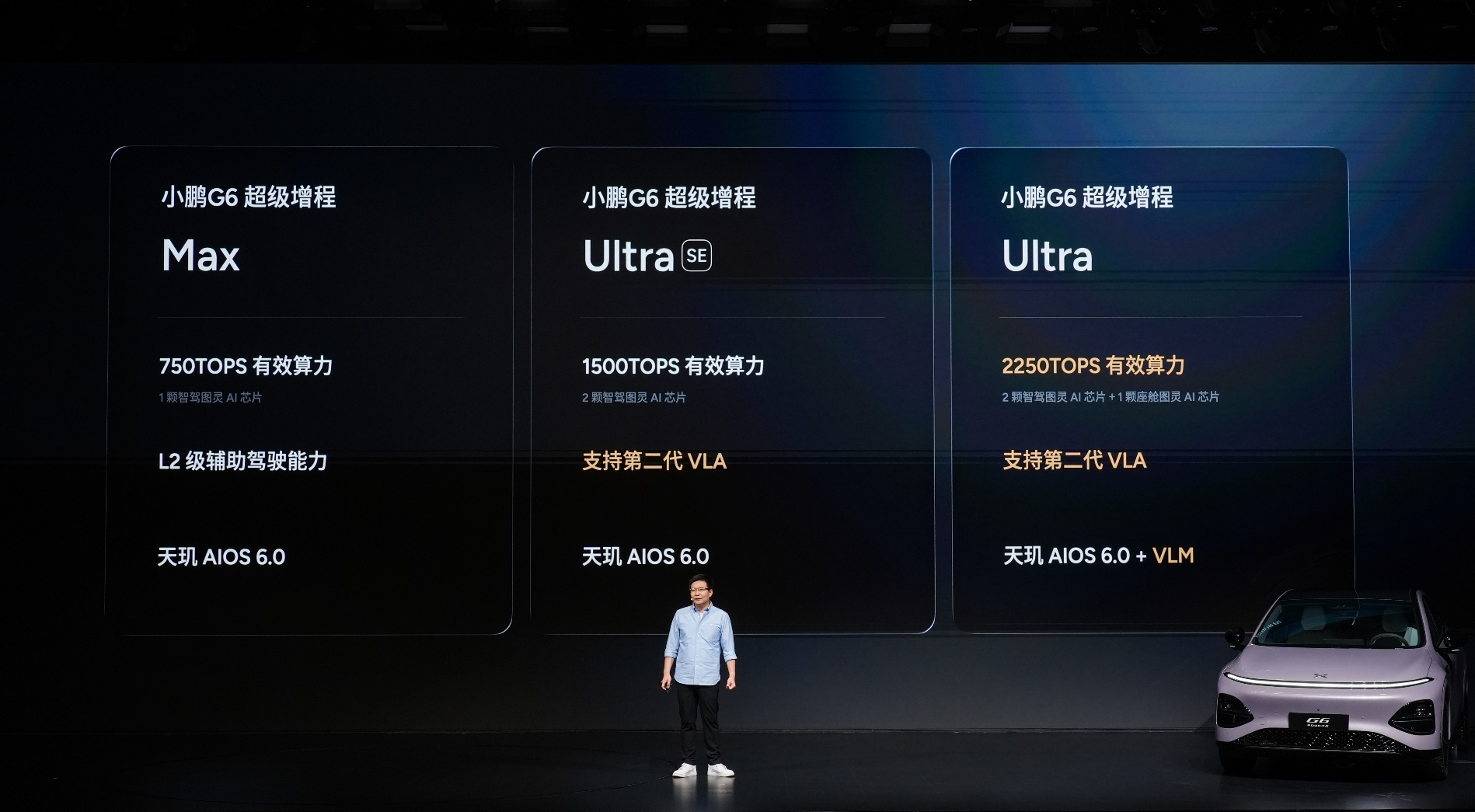 此次小鹏G6超级增程完成智能双重进化,新车是全球首次将第二代VLA带入20万以内的车型,其中Ultra、Ultra SE版本4月份开启第二代VLA全量推送,Max版今年下半年也将推送蒸馏后的版本。